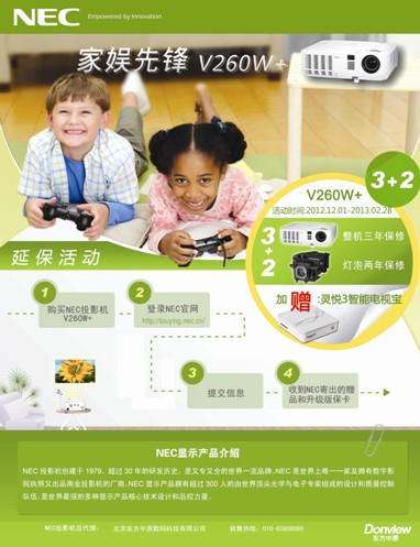 NEC V260W+投影機在廣州龍口中路投影專賣“廣州烘煒網(wǎng)絡(luò)技術(shù)”消息,家庭用戶,不僅要求功能全面,而且追求簡單實用,還需要人性化設(shè)計,既要高清畫質(zhì),還要追求性價比,是最苛刻的一類用戶。白色精靈V260W+,是NEC今年最新推出的一款低價720p投影機,可勝任家用需求。目前,商家報價為4888元,注冊獲至尊大禮包,非常超值,趕緊拿起電話撥打:020-38872796/13533690853。