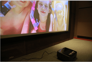 Screeneo最大的亮點在于它是首個實現只需要10cm-44cm的距離,即可呈現50-100英寸大畫面的產品,可多個房間移動使用。此外其自帶的杜比2.1環繞音效系統配備100000:1高對比度的畫面顯示能在十幾平米的家里體驗到IMAX影院的感覺。