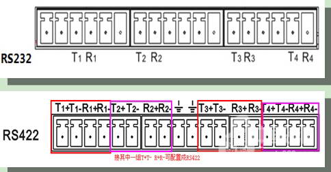 (圖示RS232接口只需簡單的改變就可配置成RS422)