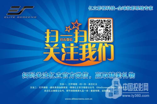 Elite Screens億立影視科技官方微信公共平臺的開通,吸引了眾多朋友的關注。為了讓億立影視科技微信更好的為各位朋友服務,提供及時全面的品牌發展,市場動態,技術支持等及時資訊,特意舉辦了本次的活動。展會期間現場掃描關注億立影視科技官方微信,均可領取精美禮品一份。 Elite Screens億立影視科技520展房,與您不見不散!