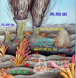 什么是“海底熱泉”呢?海底熱泉是海底地殼活動(dòng)所反映出來的現(xiàn)象,它主要分布在地殼張裂或薄弱的地方,如大洋中脊的裂谷、海底斷裂帶和海底火山附近。迄今發(fā)現(xiàn)的熱泉都分布在于太平洋和大西洋的海脊附近,分布深度為海平面以下2100米。 海底熱泉的原理和火山噴泉類似,噴出來的熱泉呈現(xiàn)出蒸汽騰騰,煙霧繚繞的奇異現(xiàn)象,好像煙囪林立的重工業(yè)基地一樣。在熱泉的噴口我們能看到高高矗立著的“煙囪”,其實(shí)這是過熱的水從地殼深處帶來的大量金屬化合物,在涌出地殼的一刻與周圍冰冷的海水相遇,金屬化合物質(zhì)被沉淀出來,沉積在噴口處,逐漸積累成高高的“煙囪”。有些熱泉噴出的是深色的液體,看起來就像是冒著“黑煙”,而另一些則涌出“白煙”。這是由于過熱的水所含有的礦物成分不同所引起的。如果水中含有鐵和硫化物,在高溫下就會(huì)形成硫化鐵,產(chǎn)生煙黑的顏色。而“白煙”的溫度比“黑煙 要低,它們一般包含的是鋇、鈣、硅等的白色化合物。富含自然硫的熱液與周圍的冰冷海水混合后,產(chǎn)生沉淀變成“黃煙”。