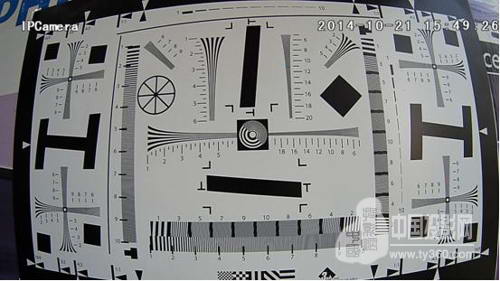 檢測1-清晰度:將鏡頭調至最低變倍后對準清晰度測試卡,該機的實時水平清晰度為1070TVL,垂直清晰度達到1100TVL,邊緣的實時清晰度為850TVL。