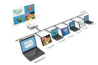 CB-X20除了能為教學提供更好的展示效果,自身具有的多PC投影功能提高教學效率,增添課堂活力,在現代教育信息化的環境下更為實用。只需安裝EasyMP Multi PC Projection,就能實現從網絡上最多50臺計算機、安裝Epson iProjection 的智能手機或平板電腦中選擇最多4個,在大屏幕上以四分畫面的形式進行實時同步展示。教師通過控制投影輸出,就能充分調動學生展示熱情,讓課堂充滿活力和創意。