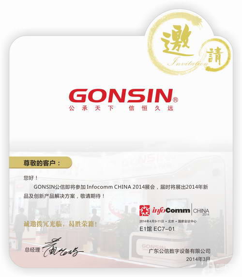 > GONSIN公信InfoComm 2014展會邀請函