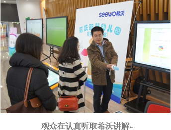 會后,許多觀眾仍然對希沃產品精彩有趣的互動效果念念不忘,紛紛來到會場外的希沃展廳,詳細聽取希沃工作人員的講解,親自體驗希沃智慧幼兒園整體解決方案豐富完善的功能。