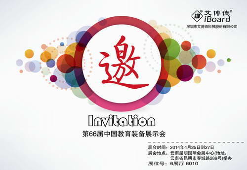2014年4月25日至27日,艾博德科技將攜多款新產品/解決方案出席第66屆中國教育裝備展示會。艾博德科技始終堅持持續創新,此次展會,我們將向合作伙伴、行業用戶展示多款應用艾博德第九代觸摸技術的專利產品,以及已榮獲專利技術的跨平臺智慧教室解決方案,旨在讓合作伙伴、行業用戶感受智慧教學應用系統風采的同時,也充分體現了艾博德 “一iBoard一未來”的主題理念。在此,誠邀各地客商屆時蒞臨位于昆明國際會展中心6號館的6010艾博德展位參觀指導。