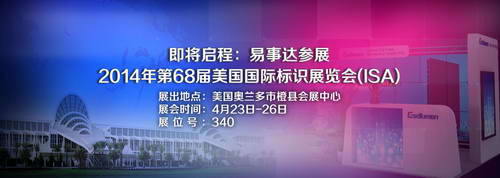 備受關(guān)注的2014年第六十八屆美國國際標(biāo)識展覽會(ISA)將于4月23日在美國奧蘭多市橙縣會展中心隆重舉行。本次展會展會吸引了全球標(biāo)識設(shè)備制造商、噴繪設(shè)備制造商、LED制造商等企業(yè)參展,展會將全面展出全球范圍內(nèi)最新的標(biāo)識技術(shù)與產(chǎn)品。應(yīng)主辦方邀請,易事達(dá)也將攜部分核心LED產(chǎn)品參展本次展會。