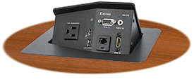 Extron HSA 接線盒把實用性和美觀性很好地融合在一起。它提供 3 種配置,能適用于大多數的房間設計和家具款式。緊湊、帶有視音頻和網絡連接的上支起式接線盒;上支起式并可配置的模塊化接線盒;以及可從桌子任意一側進行信號連接和電源接入的垂直升降