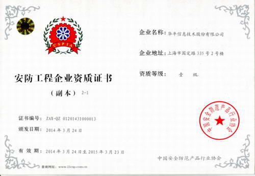 近日,華平信息技術股份有限公司已通過公示,正式獲得由中國安全防范產品行業協會頒發的《安防工程企業資質證書(一級)》。這充分說明華平在安全防范工程建設領域具備較高的技術實力和管理水平,該資質證書將有力支撐公司在全國范圍內開展安防工程業務,為華平股份的發展提供更廣闊的空間。