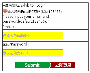 點擊頁面上方綠色的“展商登陸”按鈕:
