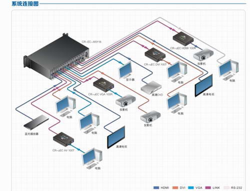 CR-EC-ANY16混合矩陣支持多種視頻信號輸入,完全可以根據不同的場合連接各種電腦信號、音視頻設備,如DVD、PC、圖形工作站等。搭配CREATOR ANY系列傳輸器、超五類網線,最大傳輸距離可達100米。完全滿足各類高端會議中心的需求。