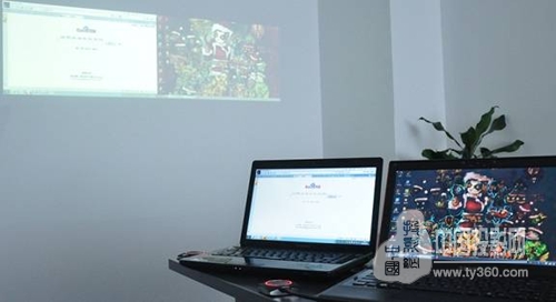 按照上述操作步驟,將另外一個USB按鈕插在電腦上,輕輕按一下。你沒有看錯,兩個電腦屏幕同時出現在投影屏幕上。
