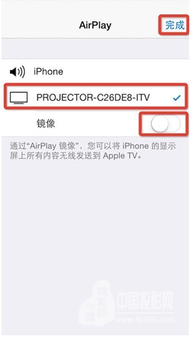 ④選擇Airplay功能;⑤.選擇“PROJECTOR-XXXXXX”;