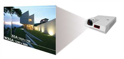 投影機(jī)采用16:10的寬屏,顯示屏幕變寬,標(biāo)準(zhǔn)