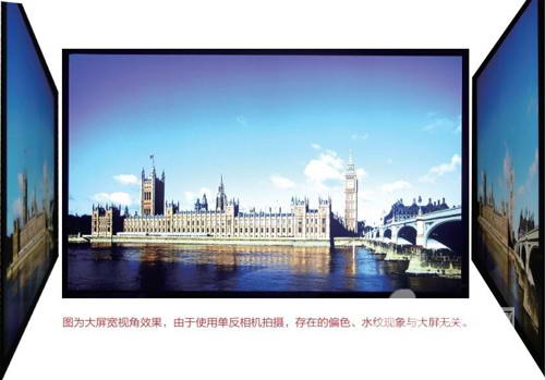 檢測1-寬視角:該屏幕采用178°超寬視角設計,筆者從垂直上下水平左右4個方向,并以接近水平的角度去觀察,都無法在其身上找到一絲昏暗或色彩丟失嚴重的情況。