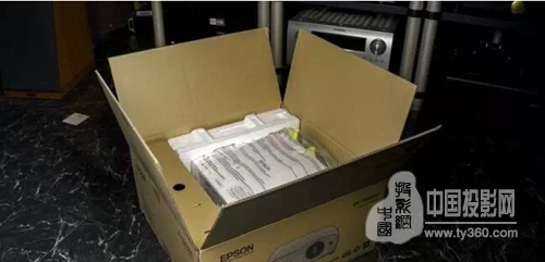 準備開箱蘿。Epson EH-TW6600內部系由一層保麗龍紙保護外表,之后再包覆一層夾鏈袋保護主體,最后兩側再套上厚保麗龍塊防震。左側看到的紙盒是配件盒。