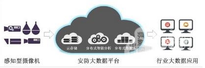安防大數據平臺基于云計算技術構建云存儲、分布式智能分析與分布式大數據庫。感知型攝像機產生的視頻和圖片進入大數據平臺后,首先存入云存儲系統,同時通過分布式智能分析二次提取深度人、車結構化數據,這些數據連同感知型攝像機產生的結構化數據一起存入分布式數據庫,為上層應用提供大數據檢索、比對和研判服務。