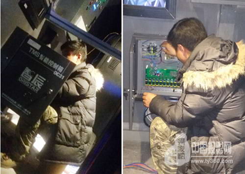 辰星科技工程師在吉視影城現(xiàn)場安裝調(diào)試TMS控制箱