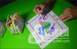 小朋友可以用彩筆在紙上畫出海洋動物,顯示在大屏幕中