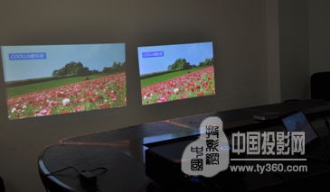 以上優(yōu)勢(shì)不僅僅是理論上的,我們?cè)趯?shí)際中做一次對(duì)比。這里,我們選擇了一款主流智能投影、一臺(tái)某品牌32寸液晶電視、一臺(tái)某品牌單片(白光LED)投影機(jī)來(lái)同時(shí)顯示相同畫面。