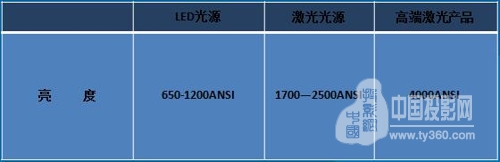 在亮度對比上,雖然LED光源的亮度現在可達到1200流明,但LED光源依然亮度很低。而激光光源從1700流明到2500流明,應用范圍更廣。并且目前市場上高端激光光源超高亮超高分(4000ANSI)系列。
