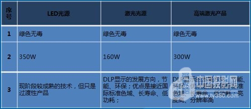 功耗與能效比。LED光源機芯的功耗大于300W,而激光光源機芯的功耗僅為130W。LED光源的能效比僅有3.5LM/W,而激光光源能效比高達12LM/W。單臺機芯如此,如果應用于多臺大型拼接系統,差別可以說一個天上一個地下。在當今全球關注環保節能的大趨勢下,孰能引領未來,不言而喻。