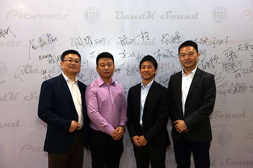 從左至右:美國杜比實驗室國際技術服務(上海)有限公司亞太區(qū)高級市場總監(jiān)郭昌宏先生、深圳瑟爾科技有限公司總經理胡特先生、日本Pioneer家用產品市販部部長奧田秀希先生、美國杜比實驗室大中華區(qū)市場總監(jiān)柯永德先生