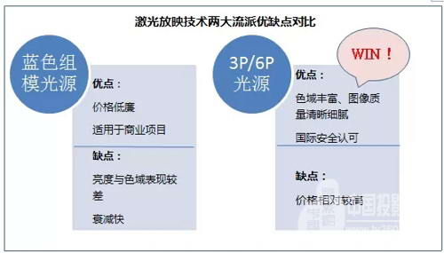 另一方陣則是以歐美廠商技術為代表的6P或3P的激光放映機。6P激光放映技術突破傳統技術壁壘,通過紅、藍、綠三個基本色的激光組模直接混成白光,更接近完美的自然白光,在人眼識別范圍內,呈現出更豐富的色域及更清晰、細膩的圖像質量。另外,6P光源在30,000小時內光僅衰減20%,而藍光組模在20,000小時衰減50%,顯然是個“短命鬼”。6p激光放映機絕對是未來影院的選擇,并將成為投影系統光源的主流資源。
