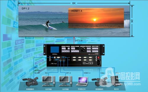 LVP608 4K2K處理器2倍放大同步拼接至8K2K