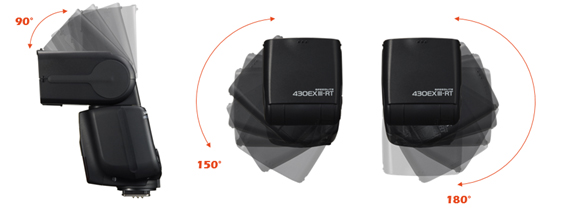 SPEEDLITE 430EX III-RT的可旋轉角度向上約90°、向左約150°、向右約180°
