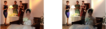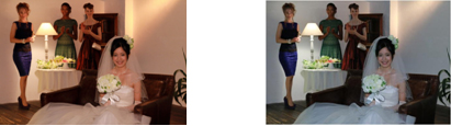 左:使用內置機頂閃光燈,未使用色彩濾鏡 右:關閉閃光燈前景人物與背景畫面色調不一致