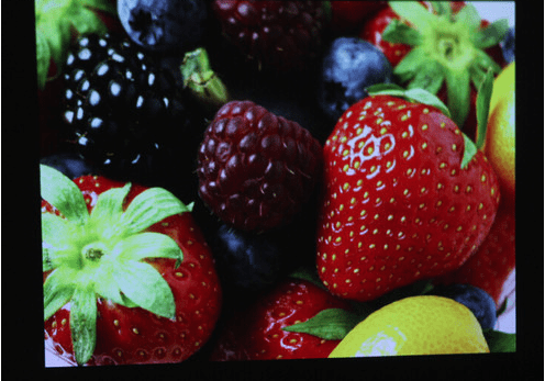 在影片、圖片投影測試中,我們也針對較小和較大尺寸進行了測試,在接近100英寸屏幕測試中,在較黑的環境下,高清影片播放非常清晰,圖片投影效果很好,色彩飽和度和亮度看起來都非常舒適,色彩還原也較好。