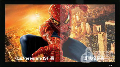 Peregrine ISF畫(huà)框幕采用ChromaWhite幕布制作,高增益1.25,180度寬廣視角,幾乎在屏幕前方任意角度觀看都沒(méi)有亮度衰減。