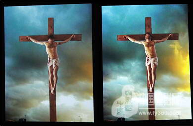 《搖晃著的基督》——同樣是單臺激光投影機投射的作品,宛如油畫一般的場景,不過畫面中的背景和人物并非靜止,而是隨著時間的流逝不停有所變化。對主題熟悉的人會第一時間意識到基督教中的宗教象征,而對主題不熟悉的人則會關注到,藝術家馬特.克里肖(Mat Collishaw)通過更新的技術表現手段來重新詮釋這一主題。投影展現的畫面色飽滿郁氣氛濃郁,給人以極大的震撼。