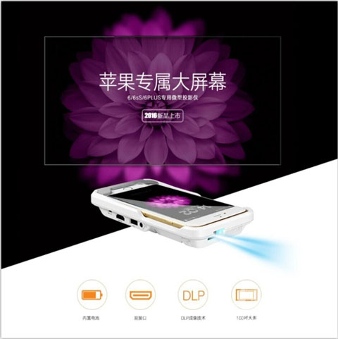 美高G6蘋果手機專用微型投影儀支持iphone5、iphone5S、iphone6、iphone6plus、iphone6s。