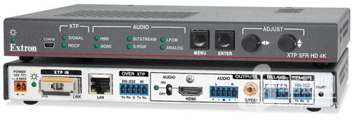 Extron 電子很高興地宣布 XTP SFR HD 4K 現已開始供貨,這是一款 XTP 圖像解析度轉換接收器,可通過單根光纖延長視頻、音頻、雙向控制和以太網信號。它接收來自 XTP 光纖傳輸產品的信號,并集成 Extron 獨特的 Vector 4K 圖像解析度轉換引擎,專門設計用于高品質的 4K 應用環境。為了簡化集成,接收器采用了在屏菜單、音頻解嵌至數字 S/PDIF 或模擬立體聲音頻輸出、用于房間控制的繼電器。以太網擴展及 RS‑232 和紅外插入功能支持局域網接入和遠程視音頻設備控制。通過 OM4 多模光纖可將信號傳送至 700 m 遠的距離,或通過單模光纖傳輸 10 km 遠的距離。XTP SFR HD 4K 非常適用于需要對 4K 視頻進行長距離傳輸和圖像解析度轉換的 XTP Systems。