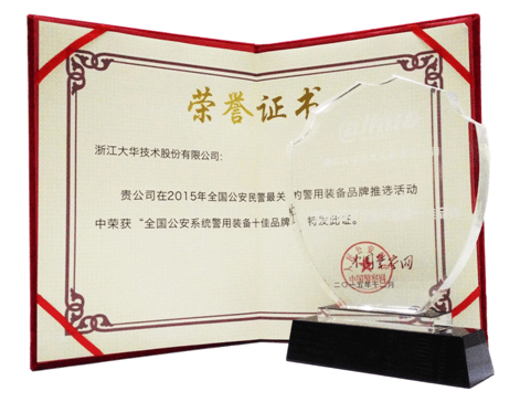 近日,由人民公安報社、中國警察網舉辦的“2015年全國公安系統最受民警關注的警用裝備品牌推選活動”在北京中國人民公安大學落下帷幕,大華股份憑借在公安行業應用領域強大的品牌影響力以及在警用產品方面的創新實踐贏得全國公安在籍民警的廣泛投票,繼續蟬聯“2015年全國公安系統警用裝備十佳品牌“。