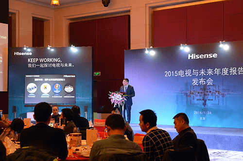 1月24日,海信在北京發布2015電視與未來年度報告,報告展示了2015年彩電行業發展大數據,同時也對2016電視產業發展趨勢進行了解讀。2015產業發展數據顯示,2015年全球彩電市場銷量下滑的形勢下,中國品牌逆勢增長,競爭格局巨變;顯示技術依然是品牌競爭的核心;用戶智能電視消費習慣養成,未來運營空間巨大。