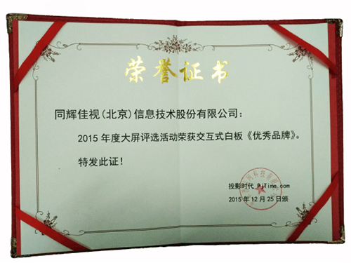 喜訊!由《投影時代網》主辦的2015年度大屏評選活動結果揭曉,同輝佳視再度拔得頭籌,榮膺交互式白板“優秀品牌”稱號。自2014年同輝佳視推出第一款自主品牌電子白板以來,這已經是該產品第二次獲此殊榮。這意味著同輝佳視自主品牌產品在短期內贏得了客戶的認可與信賴,積累了良好的口碑,打響了市場知名度。