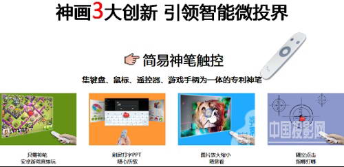 它的雙鏡頭成為智能影院的標(biāo)配,是實(shí)現(xiàn)智能與交互的秘密,據(jù)神畫技術(shù)人員介紹,其主鏡頭是負(fù)責(zé)日常投射影像的工作,而副鏡頭主要有兩種功能:一是監(jiān)測影像畫質(zhì),不過與之形成配合的是領(lǐng)先全球的自動對焦技術(shù),使其開啟投影儀后便能自動檢測并實(shí)時做出判斷,從模糊到清晰僅需兩秒,不僅徹底解除了人們手動調(diào)焦的煩惱,還解決了行業(yè)內(nèi)熱失焦的現(xiàn)象,受到現(xiàn)場客戶的高度認(rèn)可;二是動作捕捉,這里所說的是神筆的動作指令,也許你會問神筆為何物,此乃是集鍵盤、鼠標(biāo)、游戲手柄、遙控器為一體的專利神筆,它植入了一種獨(dú)特的虛擬觸控技術(shù),起初是由蘋果公司提出的概念設(shè)計,最后由神畫率先研發(fā)并運(yùn)用投影產(chǎn)品中的,它實(shí)現(xiàn)了隔空點(diǎn)擊、指哪到哪、圖片縮放、刷屏打字,靈敏精準(zhǔn)的神筆讓觸控投影儀更精準(zhǔn)方便。另外,值得一提的是,此兩項(xiàng)專利技術(shù)和深度定制的投影UI系統(tǒng)是神畫成為引領(lǐng)智能微投行業(yè)的三大創(chuàng)新,更多詳情請留意:www.piqs.com.