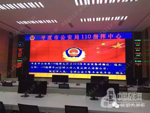 近期,銳麗大屏幕助力平度市公安局110指揮中心,系統由Really銳麗55寸液晶拼接屏、壁掛式架、圖像處理器等等組成。
