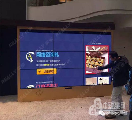 近期,銳麗大屏幕攜手易試互動(dòng)成功入駐廣州萬菱匯一樓中庭費(fèi)列羅促銷會(huì),系統(tǒng)由Really銳麗47寸液晶拼接屏、“土豪”式機(jī)柜支架、圖像處理器等等組成。