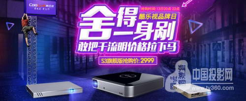 13日下午8-10點,酷樂視為回饋用戶特舉行超級品牌日,其中家用旗艦新品——“全球首款亮度超千流明LED智能投影”酷樂視S3天屏影院將于京東手機端APP火熱上線秒殺活動,限時2小時,限量100臺,用戶可以以2999元的超低價格進行搶購(原價3399元)。