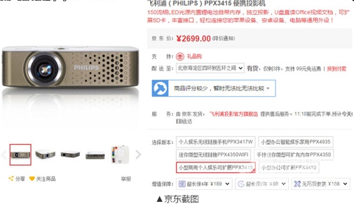 全新的飛利浦PPX3415采用RGB LED為光源和DLP引擎技術,使圖像保持水晶般清晰水平。該機擁有500流明的亮度和1000:1對比度,效果清晰度都相比同類型競品都要好且機器超薄超小,特別值得一提的是內置電池設計,可提供長達2小時的續航能力,讓使用更加方便。目前,該機在京東網的銷售價格為2699元,有興趣的朋友可以關注一下。