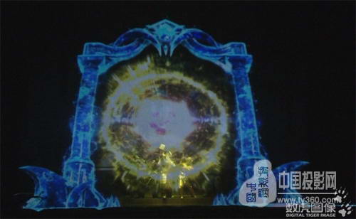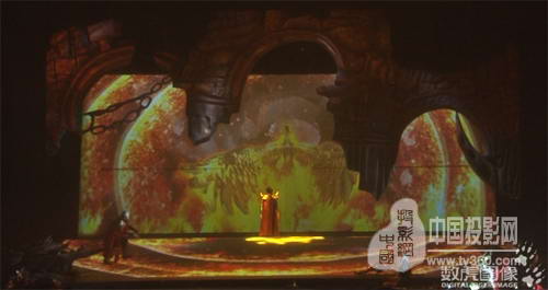 第二場戰(zhàn)役祭壇內(nèi),冰女和火女見面,為凸顯二人水火不容之態(tài)和各自技能展示,現(xiàn)場使用紗幕投影呈現(xiàn)更立體震撼的視覺效果。