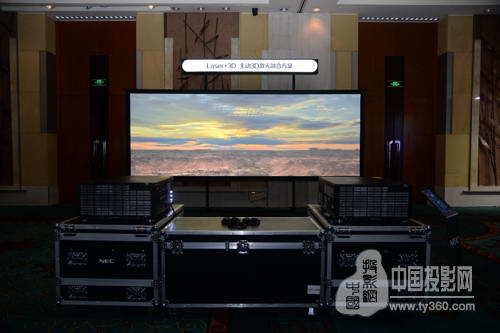當下國內的大型場館和主題公園非常具有發展潛力,NEC推出的3D激光投影融合方案就專為此設計。在巡展現場,NEC采用了2臺NEC 12000流明激光工程投影機PH1202HL+進行方案展示。這是 NEC首款3DLP激光工程投影機,采用了先進的單色激光技術, 其色彩標準遠高于一般工程機,并且采用了NEC最新的CQP影院級4K處理平臺,強大的色彩校正和色彩增強技術,保證畫面的效果和色彩一致性。同時,此方案采用的是NEC與Xpand聯合研發的RF射頻主動3D設備,覆蓋范圍高達25米,實現了超高亮3D畫面顯示,大大增強了3D體驗視覺效果,能很好地滿足大型場館和主題公園的展覽展示需求。