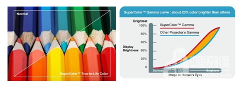 優派獨家SuperColor™超炫彩技術,擁有獨步全球的色輪及燈泡調整技術,并展現更寬廣色域,不論是明暗場景,都能投影true-to-life的顏色,更勝一般DLP投影機,真實呈現所見景物的色彩。此外,PJD7828HDL還擁有5種色彩模式,方便用戶依所投影的環境,快速選取合適觀賞的色彩模式。
