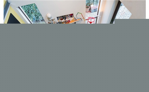 這里是柴之清的工作間,俯瞰著就像是一幅色彩濃郁的水彩插畫。陽光透過各種幾何形狀的采光窗和落地窗斜射進來,高低錯落在房間的不同角落,與此間的白色、原木色與草綠色相互輝映、交映成趣,尤其是當投影畫面上映時,整個空間里的色彩似乎都涌動了起來,光與影又有了新的關系,不期然間,腦子里閃過了一點新奇的念頭,給創作新的啟迪。