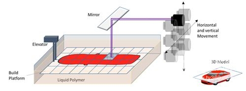 這項技術是用于快速生產原型機、功能部件或終端使用制造組件的光聚合作用工藝,有著極高的分辨率。它的工作原理是用DLP技術的紫外線(UV)來使光敏樹脂聚合。