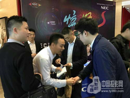 作為電影放映機的領導品牌,NEC不僅是目前市場上放映機布局最全的廠商,可滿足影院對放映機多樣化的需求,更不斷追求精進,研發新品。此次展會上,NEC工作人員不僅分享了對激光放映機國內形勢及市場定位的深入分析與判斷,而且現場展出了內置激光光源數字電影放映機NC1201L,其全密閉防塵光路系統、獨特的散熱技術、超低的靜音效果、高度靈活的安裝性能、小巧的機身及2萬小時超長時間光源運行壽命,吸引了現場嘉賓的眼球并贏得一致稱贊。更為震撼是現場播放的2D+3D片花,堪稱一場獨特的視聽盛宴,使現場嘉賓親身感受到了NEC激光放映解決方案的驚艷魅力。